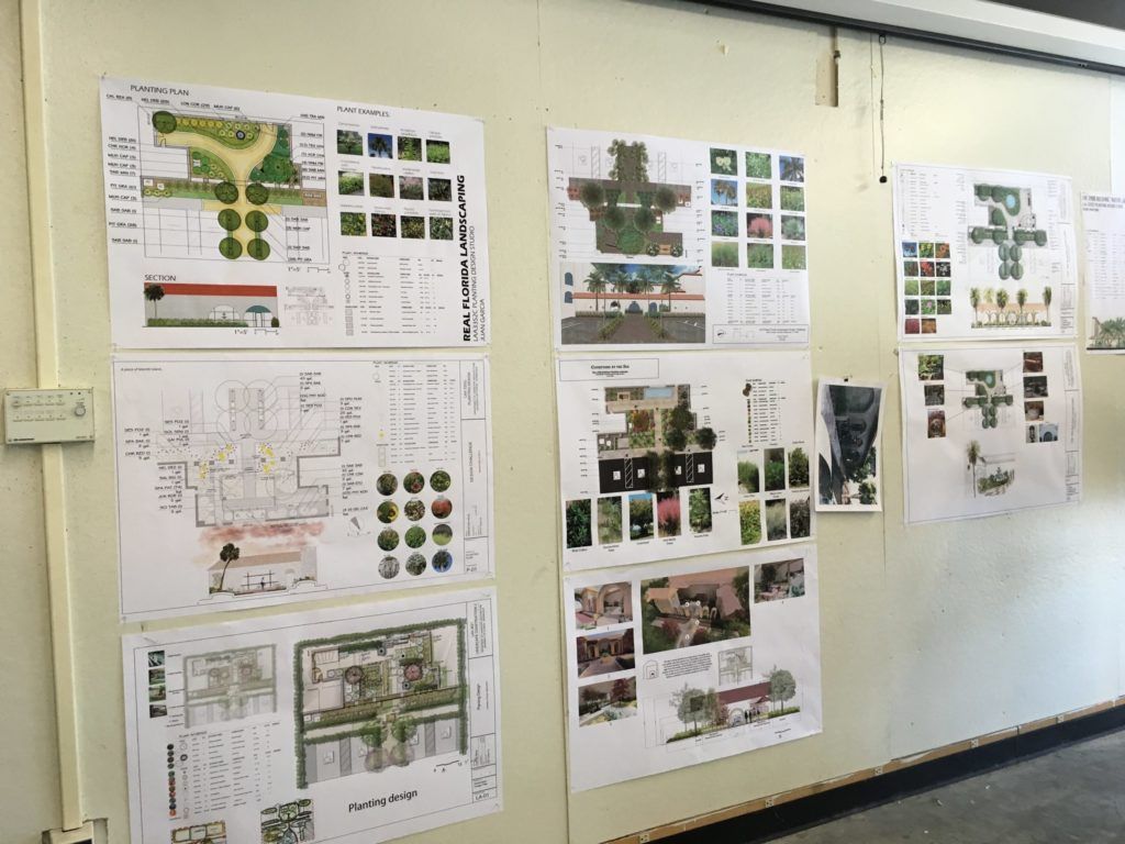 Student plans are presented for review in a “Pin Ups” event at the school. FANN professionals volunteer to review the plans in progress and suggest revisions in plant selections.